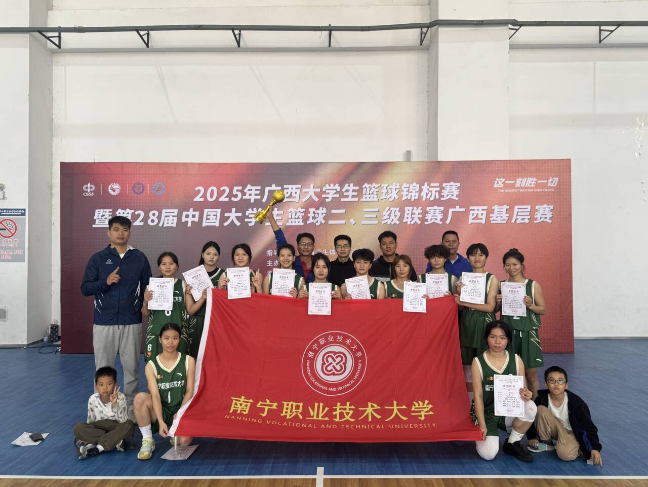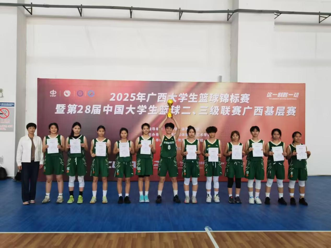 本次赛事由中国学生体育联合会指导、广西学校体育卫生艺术学会主办,是今年广西高校篮球领域的最高级别竞赛。作为2026年第28届中国大学生篮球三级联赛的选拔赛,本次比赛竞争尤为激烈,全区20余所高校参与角逐,仅有一个出线名额。我校女篮队员凭借稳定的临场发挥与坚定的意志,配合教练团队周密部署的战术,一路拼搏,最终摘得桂冠。