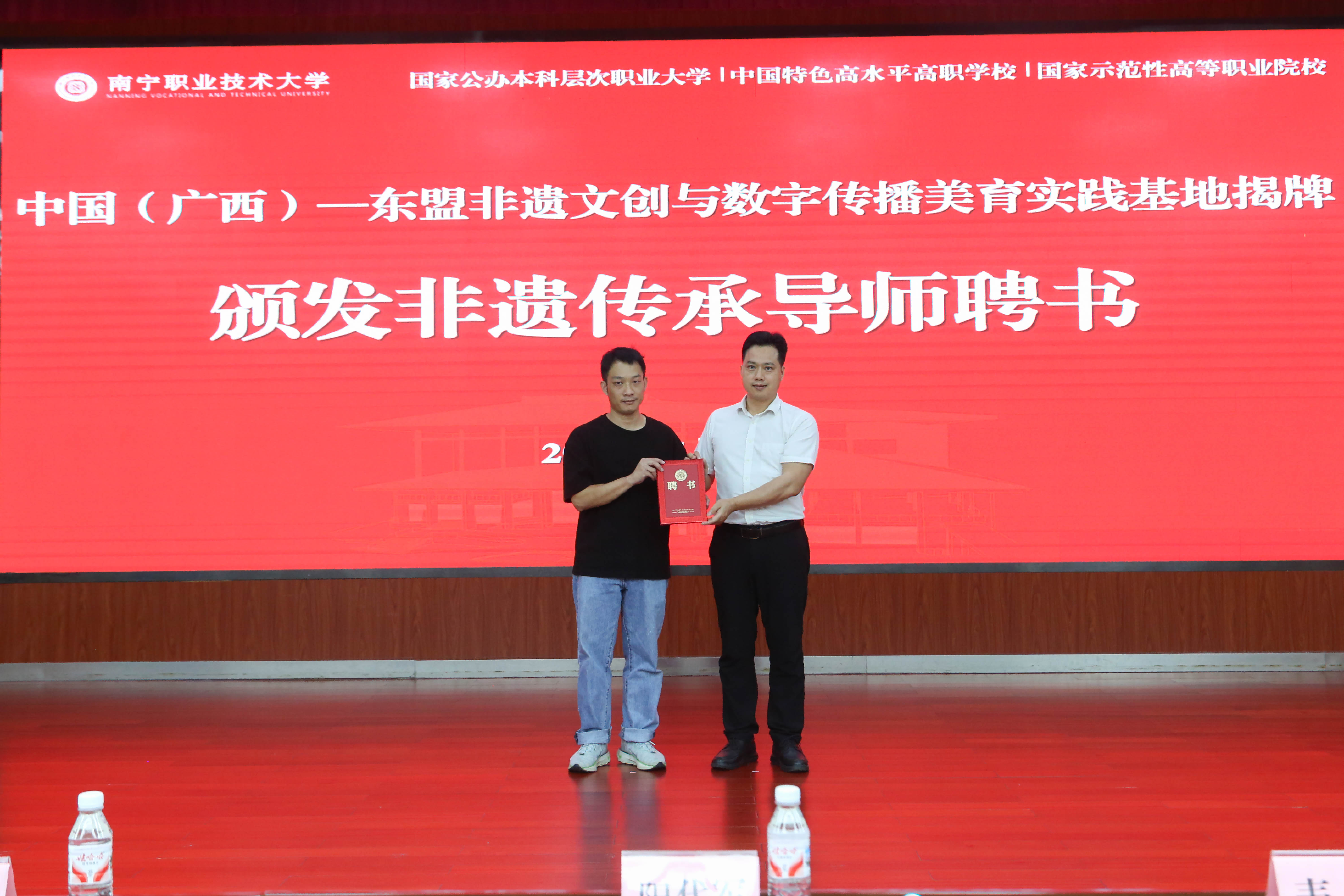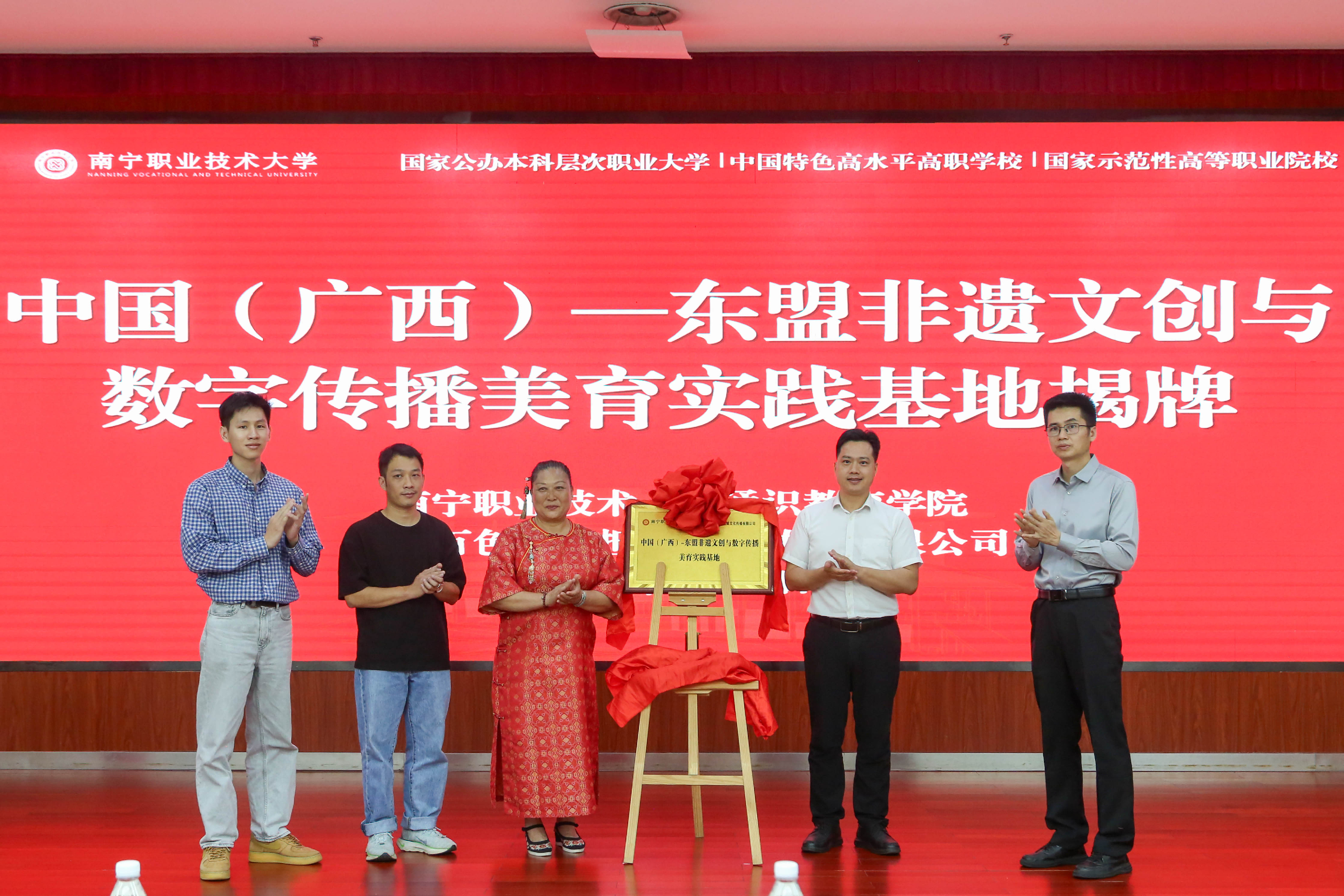 中国(广西)—东盟非遗文创与数字传播美育实践基地揭牌现场(南职融媒体吴东龙/摄)